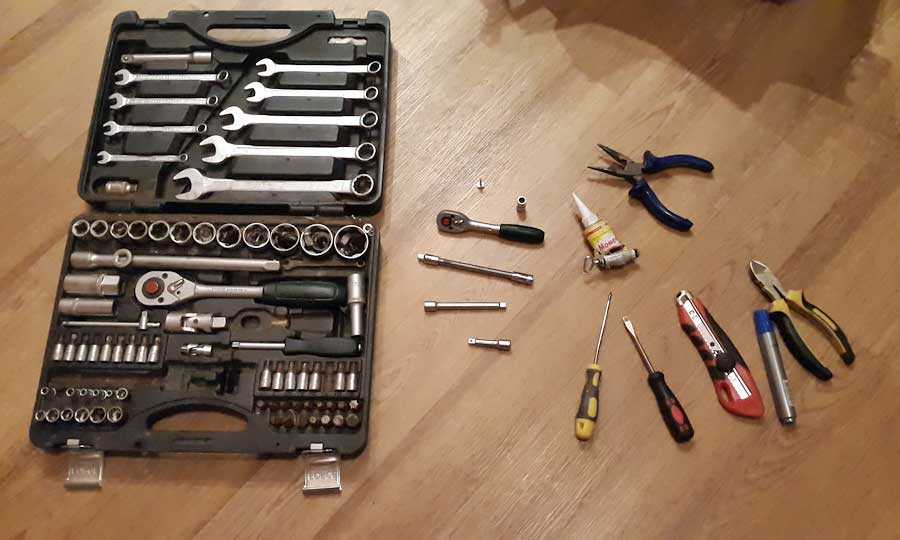 Упростить разборку позволит наличие гибкого удлинителя, набора крестовых и плоских бит и воротка с трещоточным механизмом (встречаются в наборах инструментов для ремонта автомобиля). С помощью гибкого удлинителя без проблем удастся добраться и выкрутить крепежи, расположенные в труднодоступных местах.