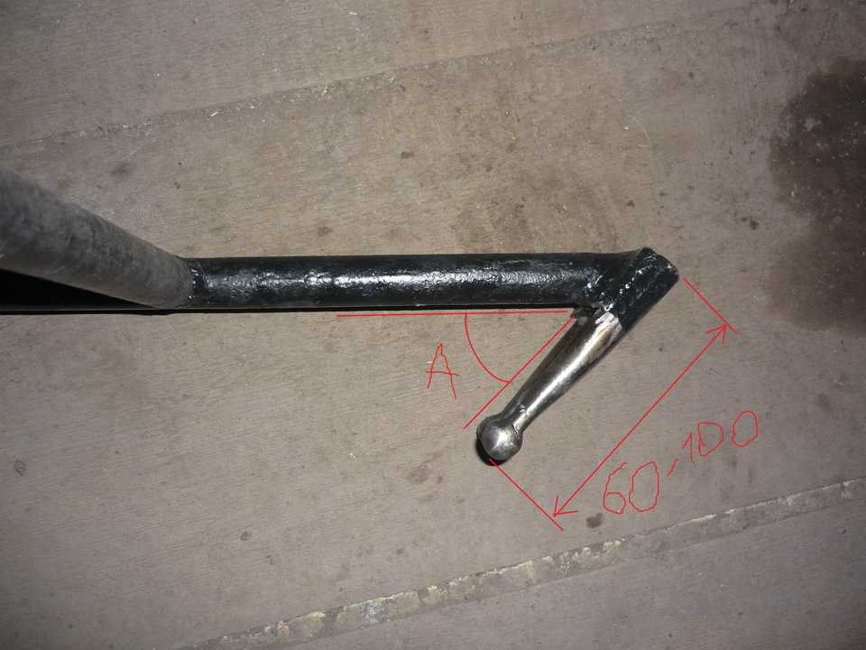 Длину рычага можно сделать другую, все зависит от размера свободной площади в гараже и силы рук. Желательно сделать наконечники рычага на токарном станке, однако также их можно выпилить при помощи болгарки с зачистным кругом, а затем отшлифовать лепестковым.