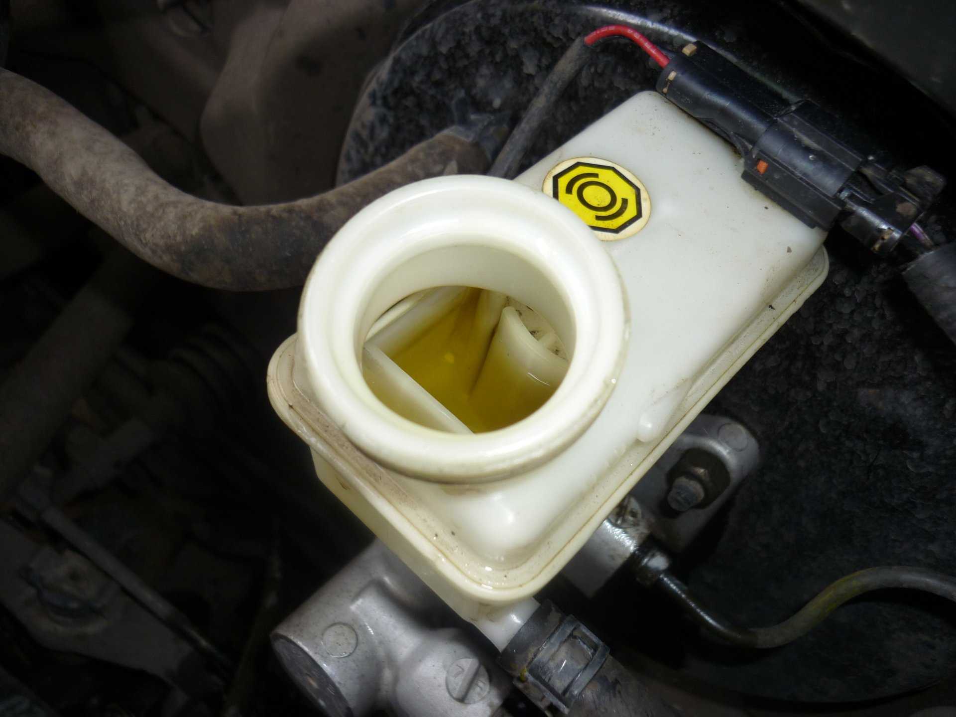 Спрятанный от легкого доступа бачок тормозной жидкости