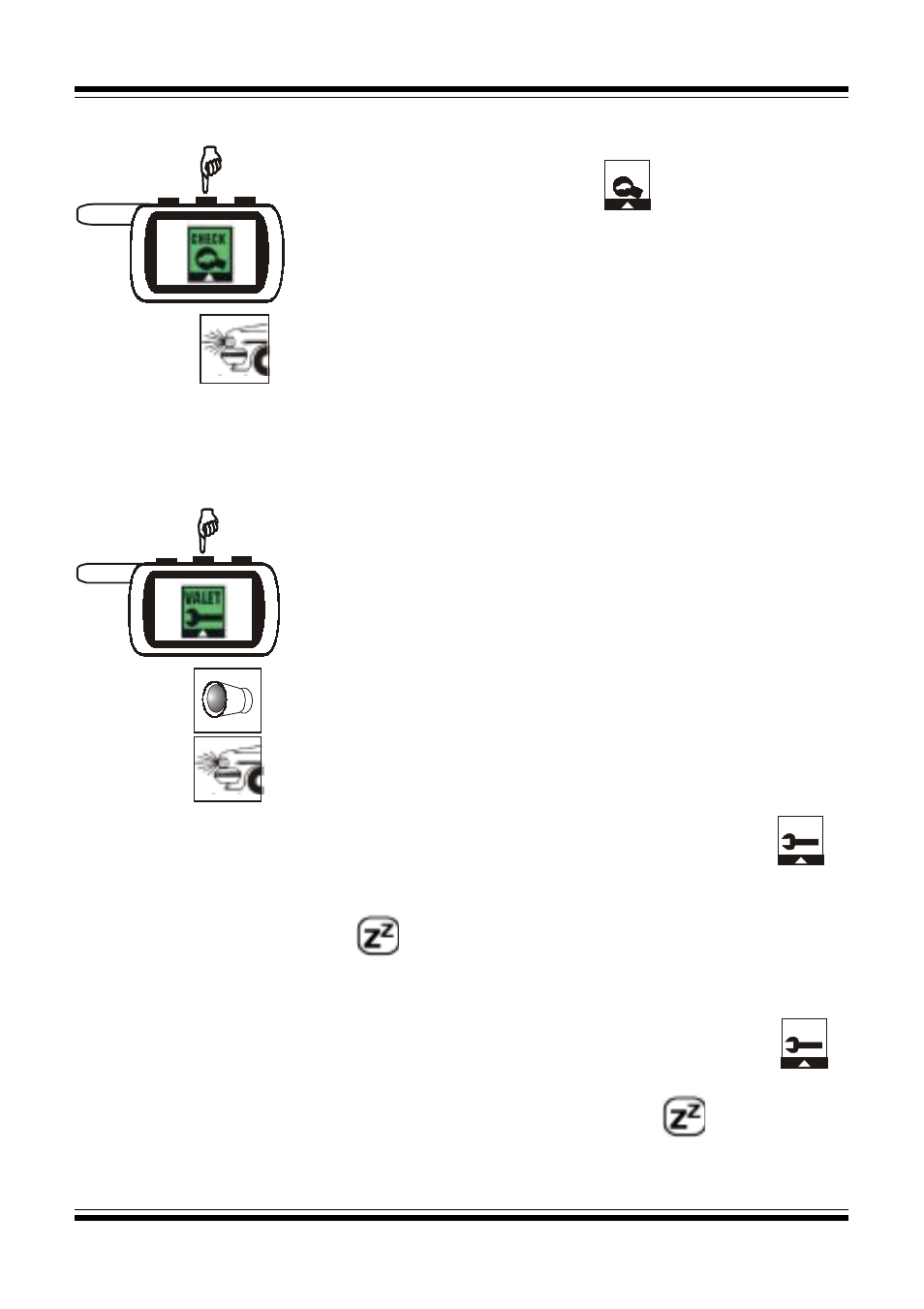 - При перемещении курсора пиктограмма будет мигать. Для включения/выключения режима «Valet» необходимо нажать и удерживать кнопку 1 коммуникатора до звучания 1 мелодии и 2 коротких сигналов. После того, как загорелся значок гаечного ключа на дисплее коммуникатора, необходимо выйти из системы управления.