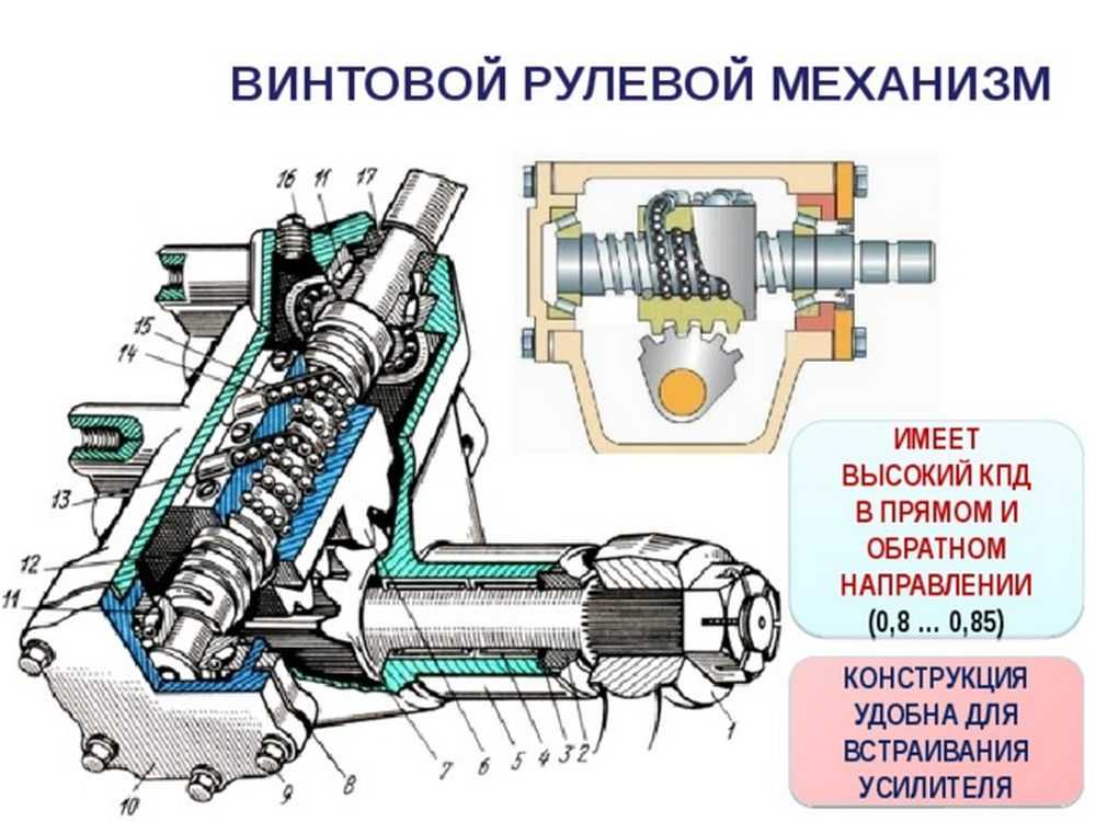 Есть еще и винтовая система рулевого управления, схожая с червячным механизмом.