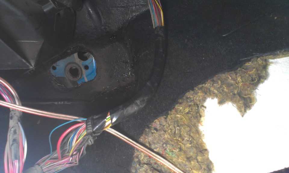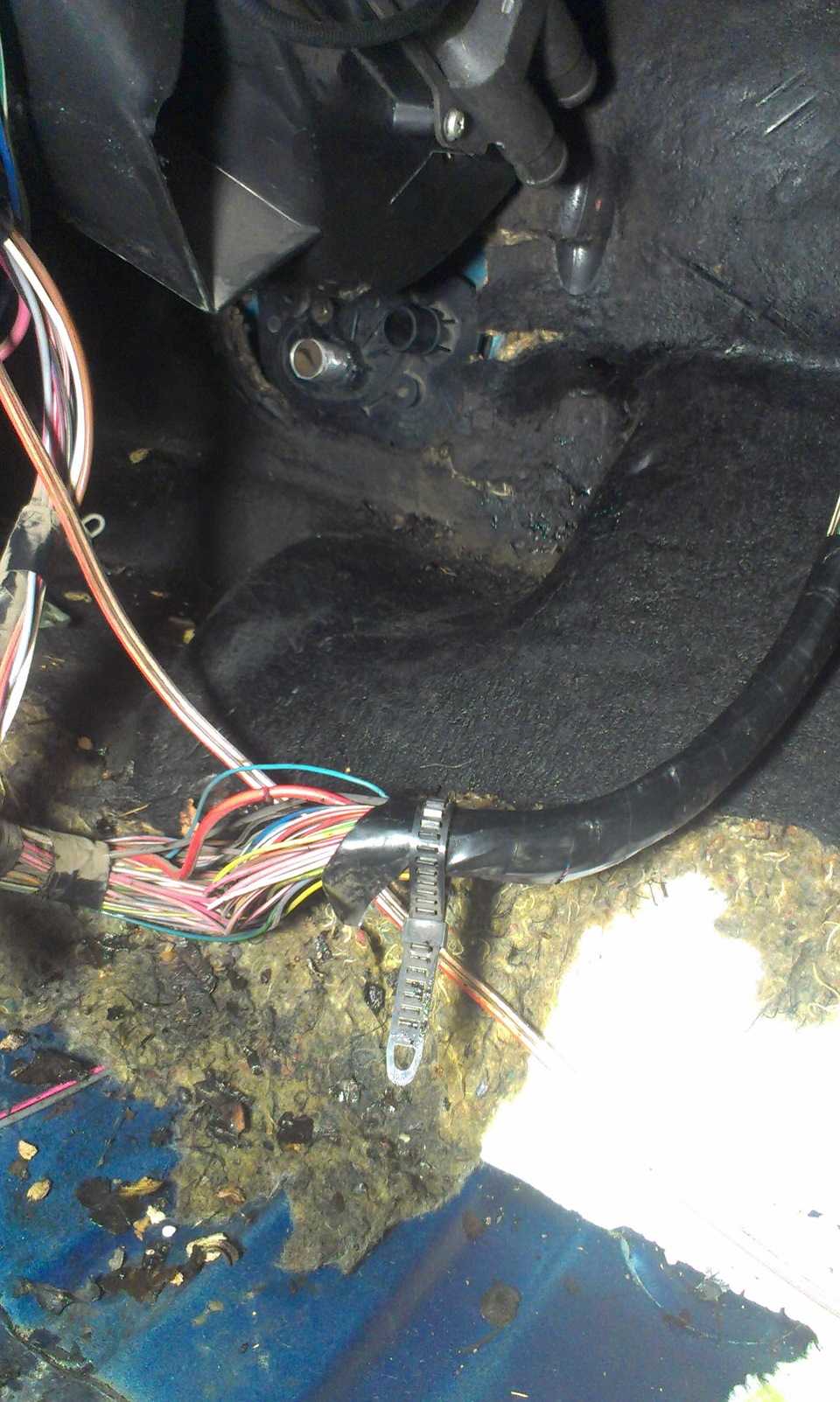 Чтобы он не мешался под ногами временно притянул его хомутом к панели. Когда буду собирать салон придумаю что-нибудь получше))