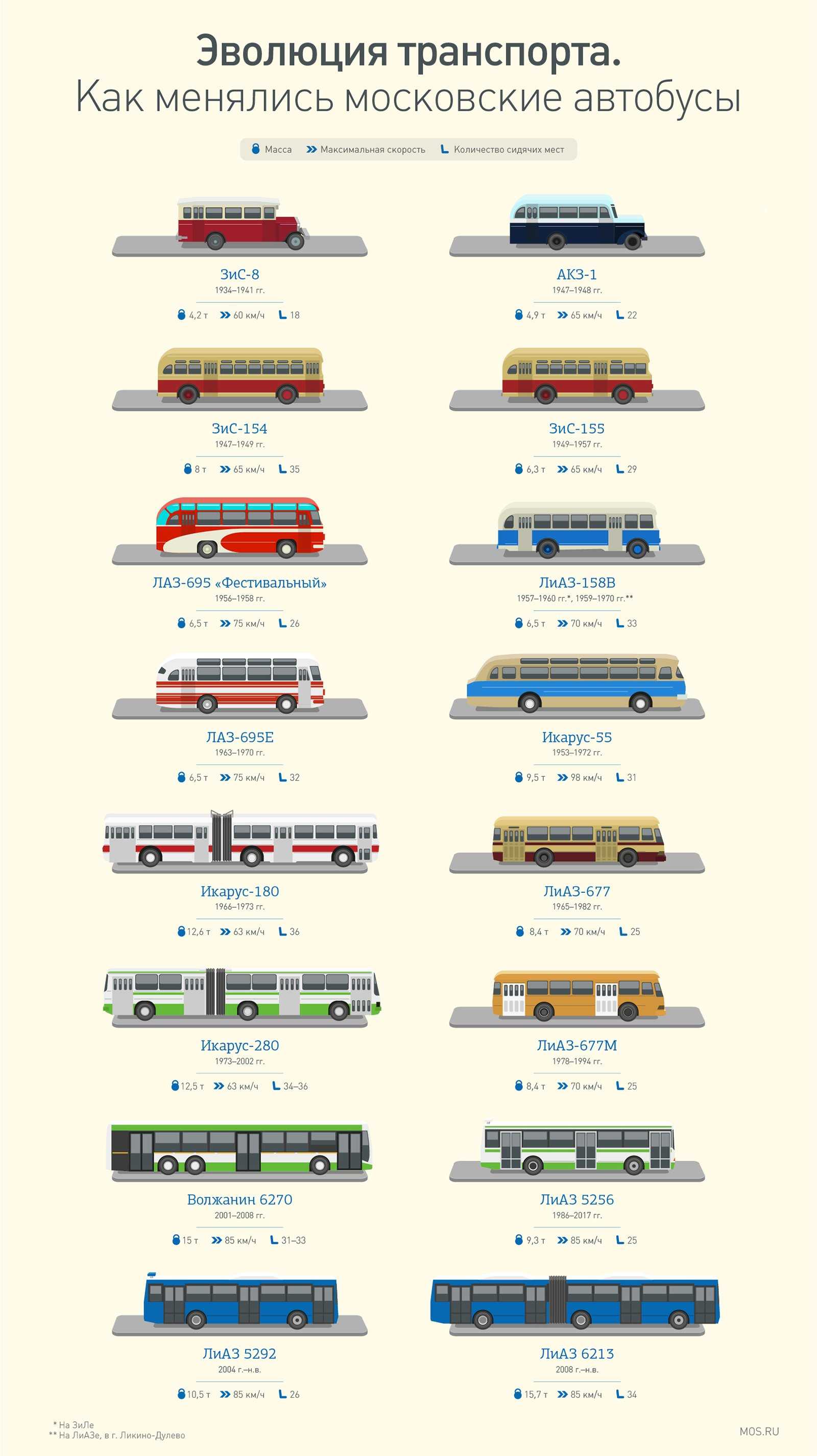 С 1927 года СССР налаживает собственное производство автобусов с использованием части импортных деталей. На улицы выходят «яшки» (Я-3 и Я-6), а в начале 1930-х годов – ЗИСы. Кузов советских моделей изготавливали из дерева, а затем обшивали металлом.