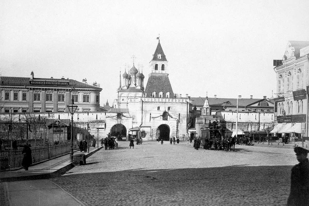 Вид на Ильинские ворота Китайгородской стены со стороны Новой площади. Автор П. Павлов. Конец ХIХ – начало ХХ века