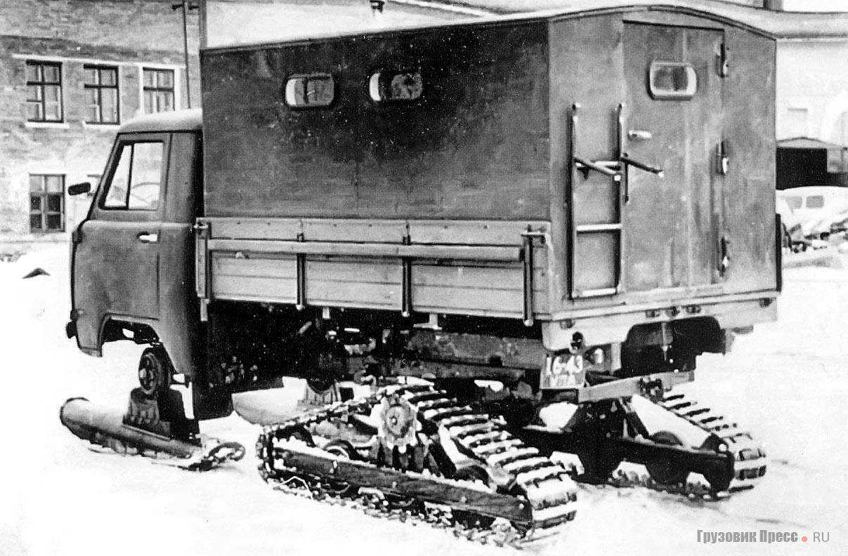 Чертежи на постройку первого образца выдали в июле 1962 года общий вес новой ходовой части лишь ненамного перетянул обычный колёсный ход. В такой комплектации автомобиль был способен двигаться по заснеженным дорогам и снежной целине значительной глубины. При плотном снежном покрове и наличии наста глубина снежного покрова уже не имела значения – у снегохода оказалось небольшое удельное давление на снег. При отсутствии снежного покрова сменное оборудование с машины можно было демонтировать, и она превращалась в обычную на колёсах, что делало машину всесезонной. Правда, перестановку на лыжи приходилось производить в полевых условиях, так как для движения на лыжах машине необходим снег, а перестановку гусеничного движителя – в гаражных условиях, так как для этого необходимы дополнительные подъёмные механизмы.