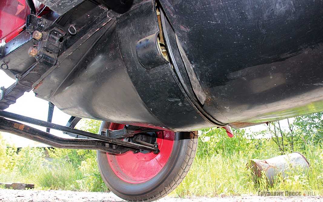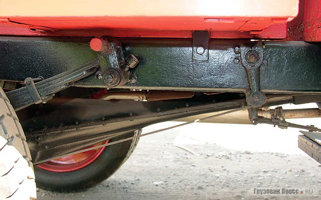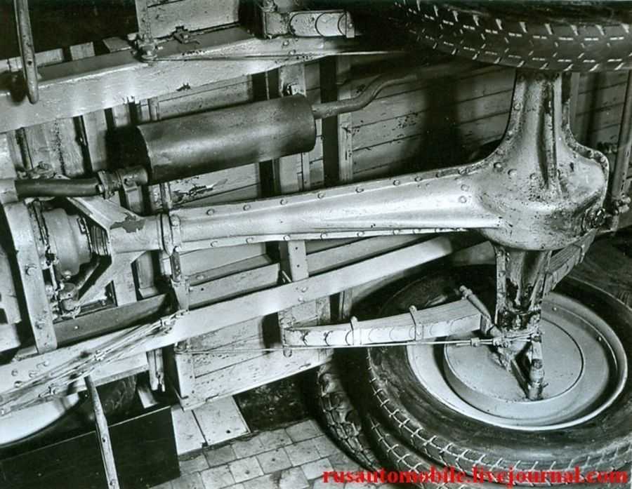 Рама этого грузовика штампованная из стального листа толщиной 6 мм. Передняя и задняя зависимые подвески автомобиля на продольно расположенных полуэллиптических рессорах: спереди – 7 листов толщиной 7 мм, сзади – 10 листов по 9 мм.