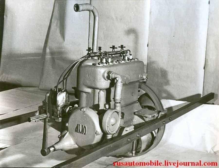 Поставим АМО на стоянку и очень кратко пройдёмся по спецификации и техническим характеристикам, опираясь на архивные данные производителя автомобиля. У АМО Ф-15 рядный четырёхцилиндровый двигатель с нижним расположением газораспределительного механизма с шестерёнчатым приводом. Цилиндры двигателя отливались одним блоком заодно с рубашкой охлаждения и съёмной головки не имели. При этом сверху блока цилиндров крепилась крышка, после снятия которой можно было очистить рубашку охлаждения от накипи. Блок цилиндров крепится к верхней части алюминиевого картера. Картер снабжён лапами для крепления к раме в четырёх точках. Нижний картер отлит из алюминиевого сплава. Поршни изготовлены из чугуна, шатуны стальные трубчатые. Коленчатый вал стальной, кованый, с наклонными щёчками (на ранних машинах коленвал имел прямые щёчки и вырезался из сплошного куска), установлен на трёх «заливных» коренных подшипниках. Ось коленчатого вала конструктивно смещена на 10 мм по отношению к осям цилиндров.