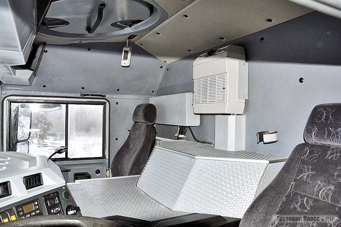 В кабине нет избыточного простора, и в то же время ты не чувствуешь себя стеснённым. Вроде бы внушительная высота, огромные колёса, детали с явным запасом прочности – всё должно накладывать свой отпечаток. Но внутри ты чувствуешь себя, как в обычном грузовике – габариты те же, площадь остекления прекрасная, опять же АКП. Разве что огромный моторный тоннель немного смущает поначалу, но в реальности его наличие очень быстро перестаешь замечать.