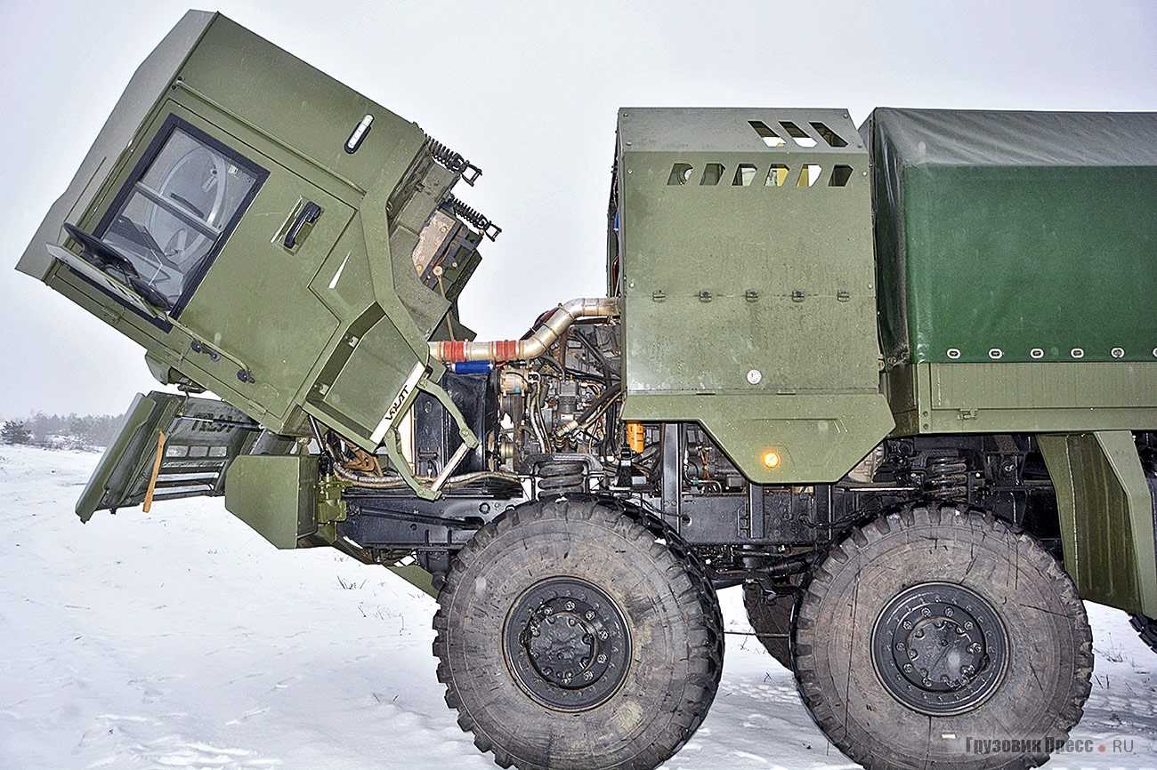 Всё, что можно: подъём кабины, опускание запасного колеса и т.п. электрифицировано. Все закладки под армейское оборудование предусмотрены. Даже вариант бронирования кабины есть в списке опций.