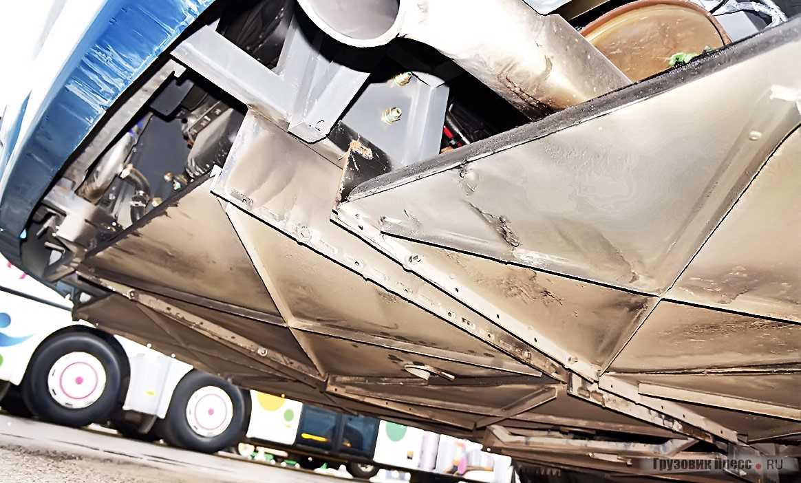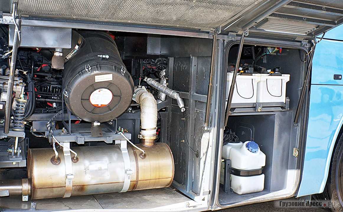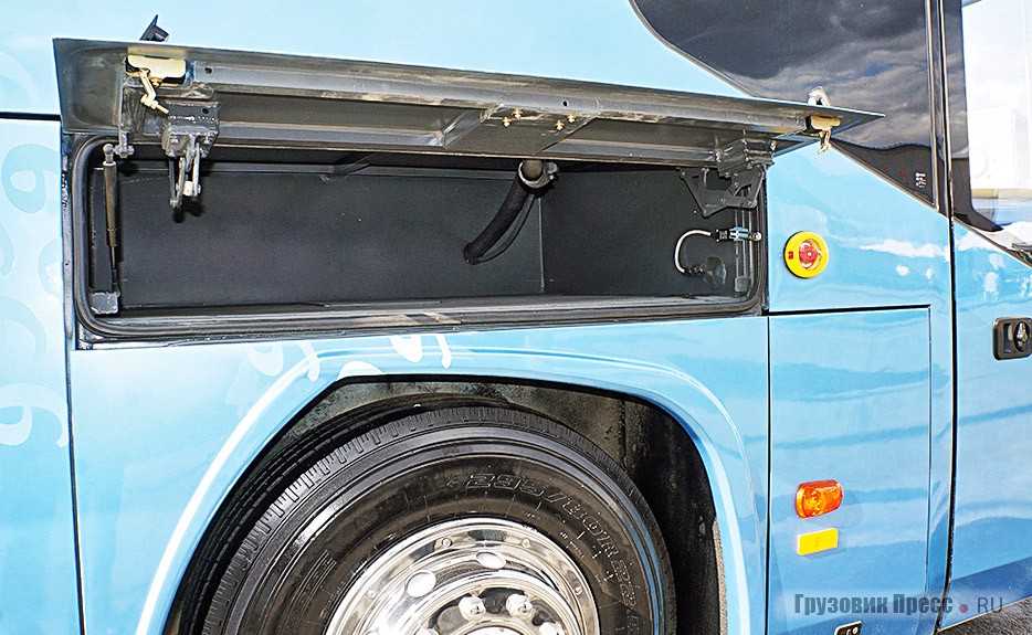 Возможно, багажный отсек вместимостью 5,15 м3 кому-то покажется маловатым. Напрасно, всё-таки это не дальнобойный лайнер, а автобус для внутриобластного сообщения. К тому же сквозные отсеки, позволяющие извлекать багаж с любой стороны машины, в поперечнике разделены раскосами, которые предотвращают перемещение поклажи при резком торможении или разгоне.
