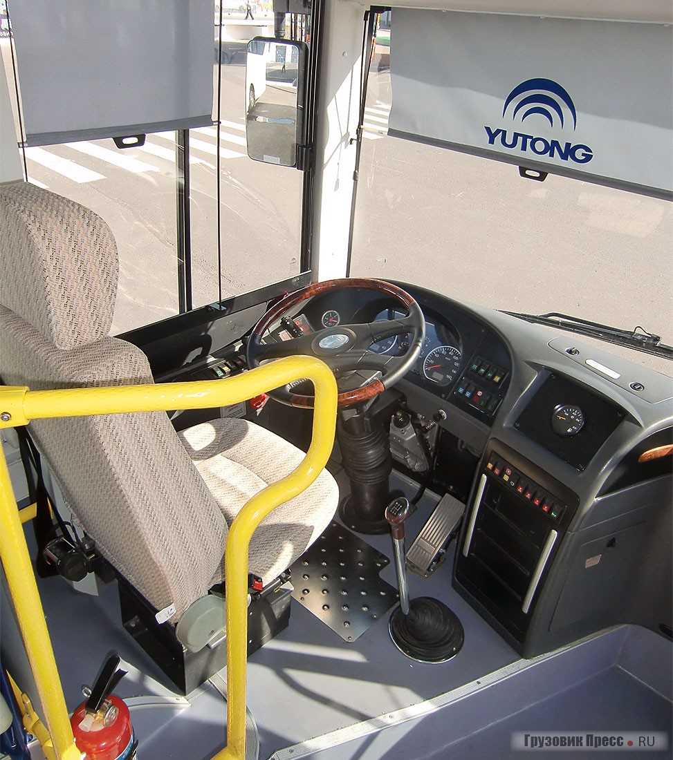 Именно такое сравнение приходит на ум при виде открытого со всех сторон рабочего места водителя. Конечно, при таком малом переднем свесе соорудить полноценную кабину сложно, но отгородить ее от салона перегородкой посерьезнее стоило бы. И дело даже не в том, что непосредственный контакт с пассажирами не способствует процессу управления автобусом. Просто постоянно работающая дверь и форточка, которая почему-то открывается только с дальней от ветрового стекла стороны, обеспечивают такой сквозняк, что продуть может даже закаленного человека.