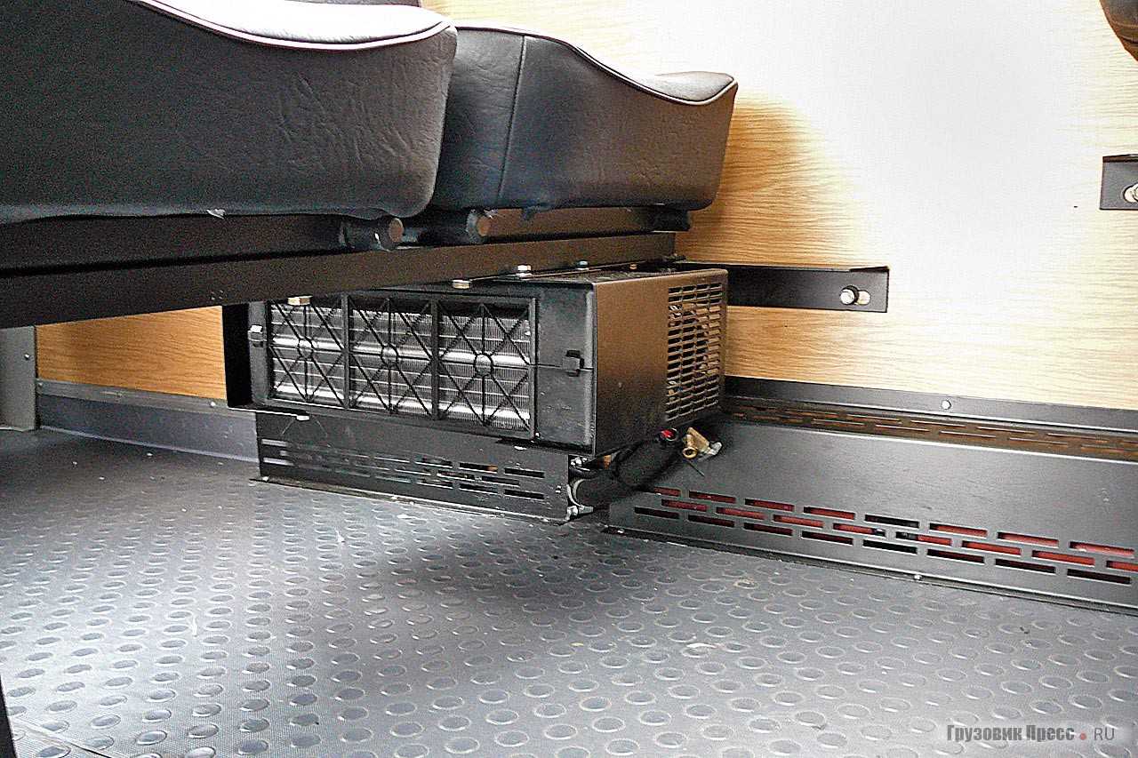 Четыре отопителя в салоне, один отопитель рабочего места водителя, подогреватель, подключены к системе охлаждения двигателя.