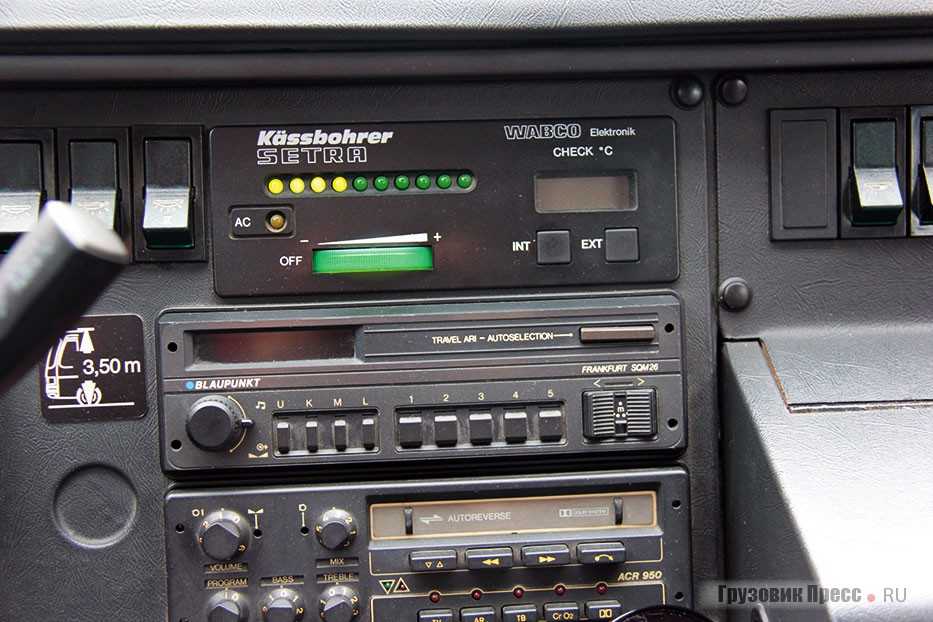 - Setra S208H оснащен осушителем воздуха с электроподогревом WABCO. ABS — антиблокировочная система.