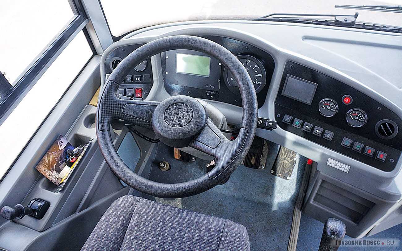 Первое и самое яркое впечатление: «А что это за руль?! Бублик какой-то, а не баранка для взрослого автобуса!!!» На самом деле управлять таким компактным рулём оказалось довольно удобно. Причём как на ходу, так и в статике, что непременно оценят водители при выезде с остановки. К тому же малые размеры рулевого колеса увеличивают свободу действий на рабочем месте.
