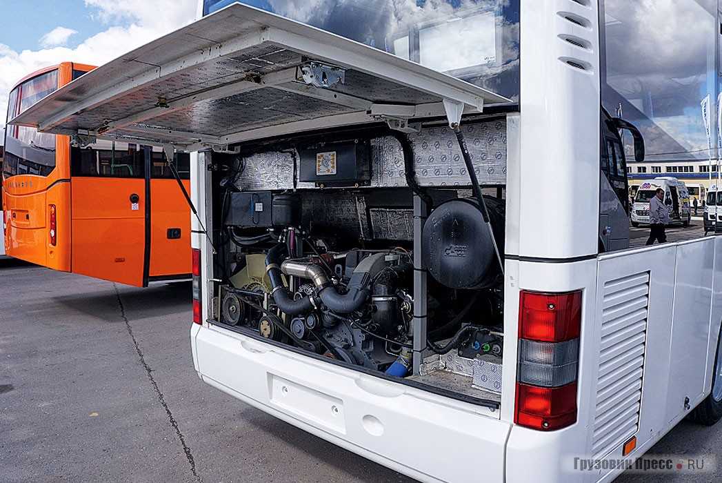 Неплохо подготовлен автобус и к работе на наших дорогах. Борта – оцинкованная сталь, приклеенная к каркасу кузова. Передняя и задние маски стеклопластиковые. Колёсные арки обшиты нержавейкой. Снизу моторный отсек прикрыт металлической защитой. Для пущей надёжности и КП ZF, и одноимённое рулевое управление именно немецкой сборки, что особенно подчёркивают представители компании «БРОНАВТО». Да и вообще, отсутствие возможности выбора «железной» составляющей автобуса с лихвой компенсируется её качеством и «брендовостью» комплектующих.