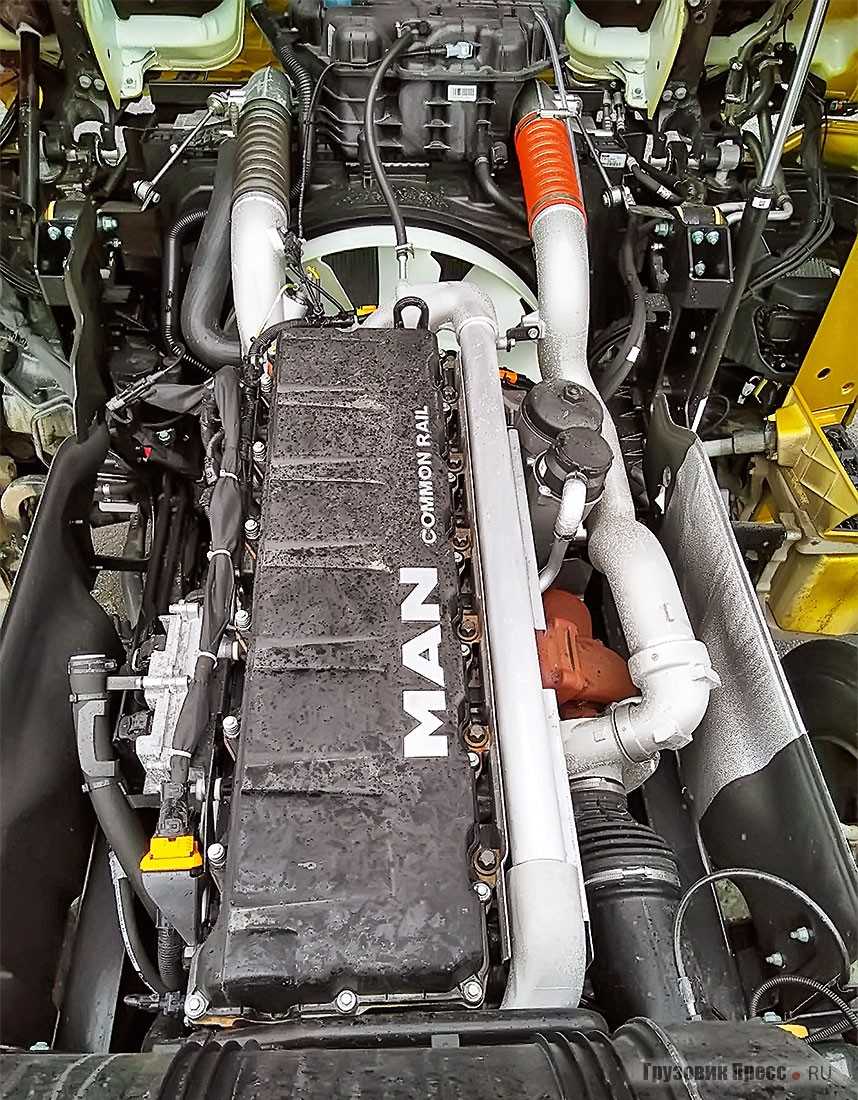 11-литровый, точнее рабочим объёмом 10518 cм3, двигатель D2066LF41 пятого экологического класса мощностью 400 л.с. c системой нейтрализации SCR, хоть и не самый великий богатырь в строю предлагаемых для РФ «мановских» моторов даёт стабильную тягу. На заказ в России доступен максимальный 640-сильный двигатель для всякого рода тяжестей. Полагаю, основной пул продаж придётся на середнячков, развивающих четыре сотни «с хвостиком» кобыл.
