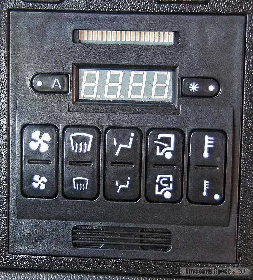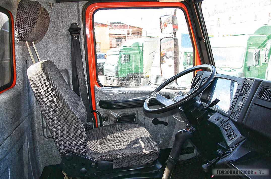 Вместо старомодных ползунков вентиляции установлен современный блок управления кондиционером. Единственное, что досталось в наследство от старой кабины, – ужасное качество пластика передней панели. Другие материалы отделки стали приятнее на ощупь. Двери и задняя стенка кабины обшиты мягкой тканью.