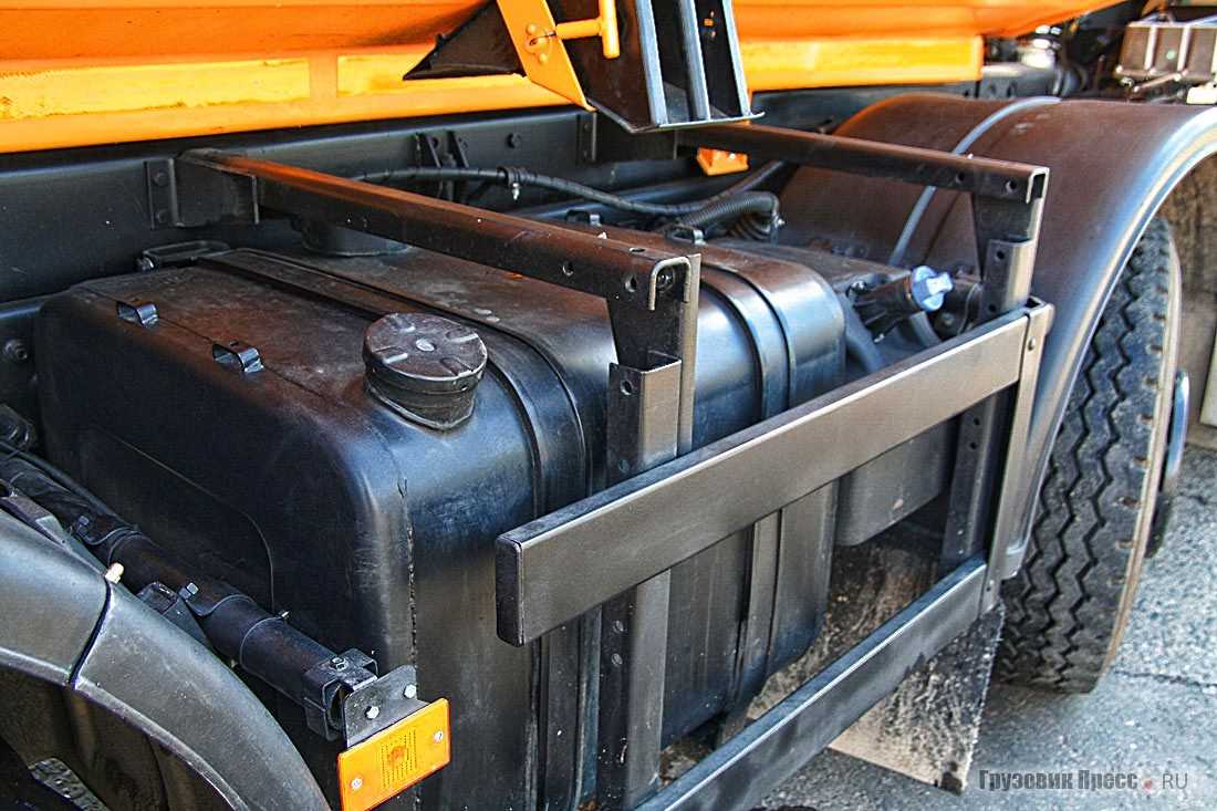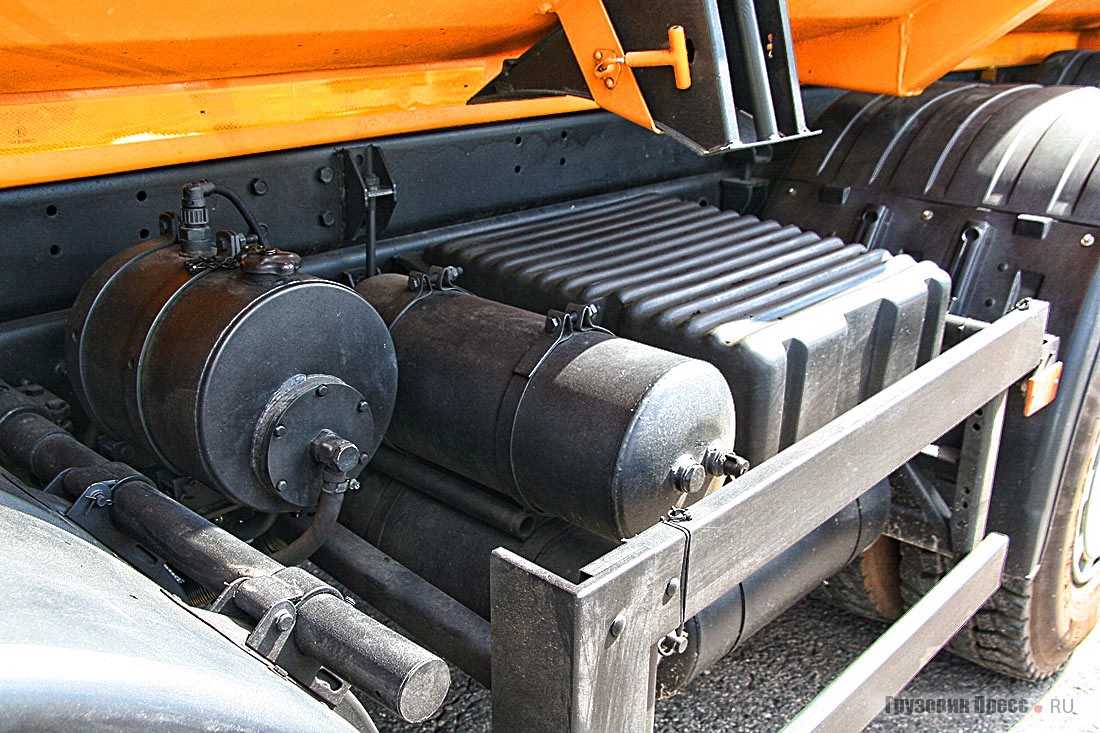 Из особенностей конструкции нового самосвала можно отметить наличие нового электронного блока управления двигателем. Естественно, что этот узел импортного производства заимствован у грузовиков MAN. А вот размещение блока управления и отсутствие защиты от грязи показалось нам не очень удачным решением. Для «чистой» Европы это не проблема, но при эксплуатации машины на просторах СНГ блок будет постоянно забиваться грязью, что вряд ли положительно скажется на его работоспособности.