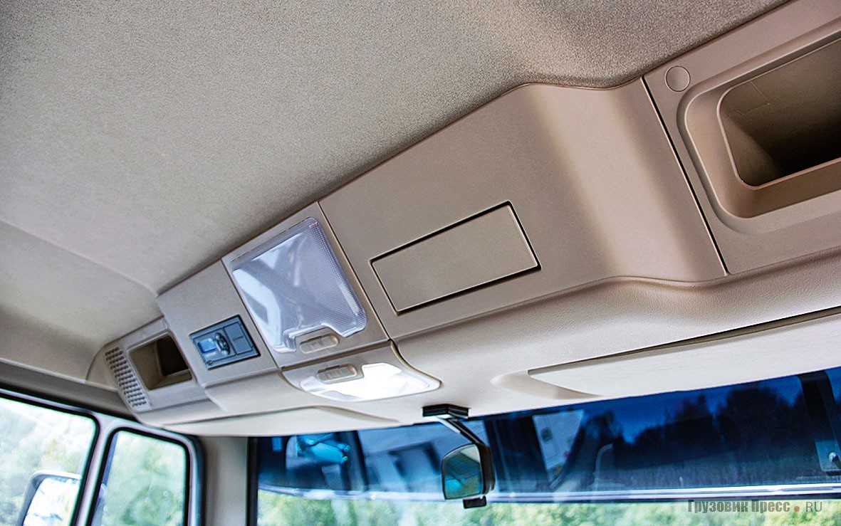 Пассажиру в минимально оснащенной кабине и на дальних дистанциях будет не так уютно. Зато о комфорте спального места явно заботились. Оно оснащается подогревом и во всех версиях есть аудиосистема с дистанционным пультом управления. На высоте внутреннее освещение, помимо индивидуальных ламп для пассажира и водителя есть центральный плафон дневного света. Удачно в центральной панели расположен блок предохранителей, до которого легко добраться из любого места.