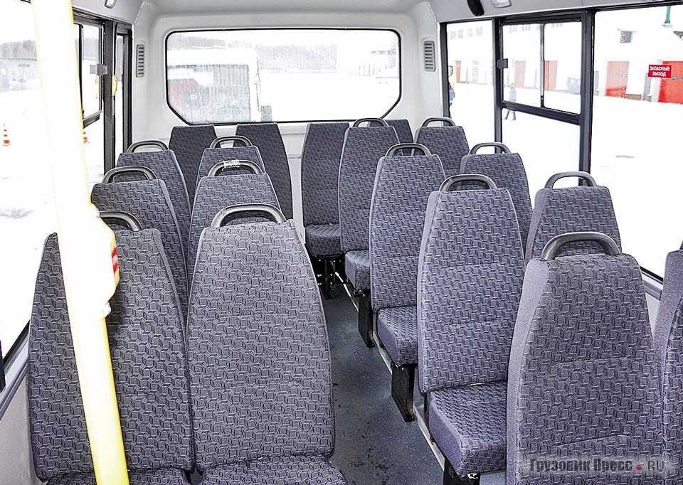 Понятие «просторный салон» абстрактно. Поэтому основные внутренние размеры можно посмотреть на схеме. Уточню: высота салона – 1902 мм, расстояние между сиденьями в районе коленей – 275–290 мм, ширина прохода – 366 мм. В модификации ГАЗ-A64R42, предназначенной для работы на городских маршрутах, допускается всего один стоящий пассажир, а в «пригородном» ГАЗ-A63R42 перевозка стоя и вовсе запрещена, цифры более чем приемлемые.