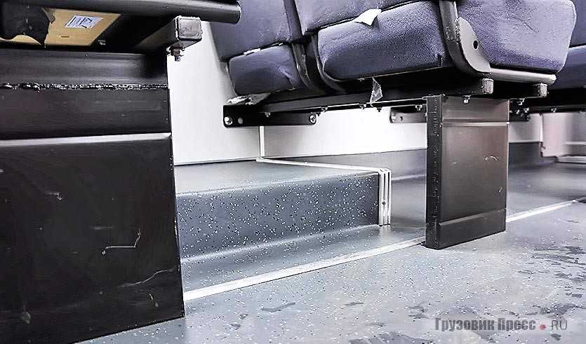 Поэтому основные внутренние размеры можно посмотреть на схеме. Уточню: высота салона – 1902 мм, расстояние между сиденьями в районе коленей – 275–290 мм, ширина прохода – 366 мм. В модификации ГАЗ-A64R42, предназначенной для работы на городских маршрутах, допускается всего один стоящий пассажир, а в «пригородном» ГАЗ-A63R42 перевозка стоя и вовсе запрещена, цифры более чем приемлемые