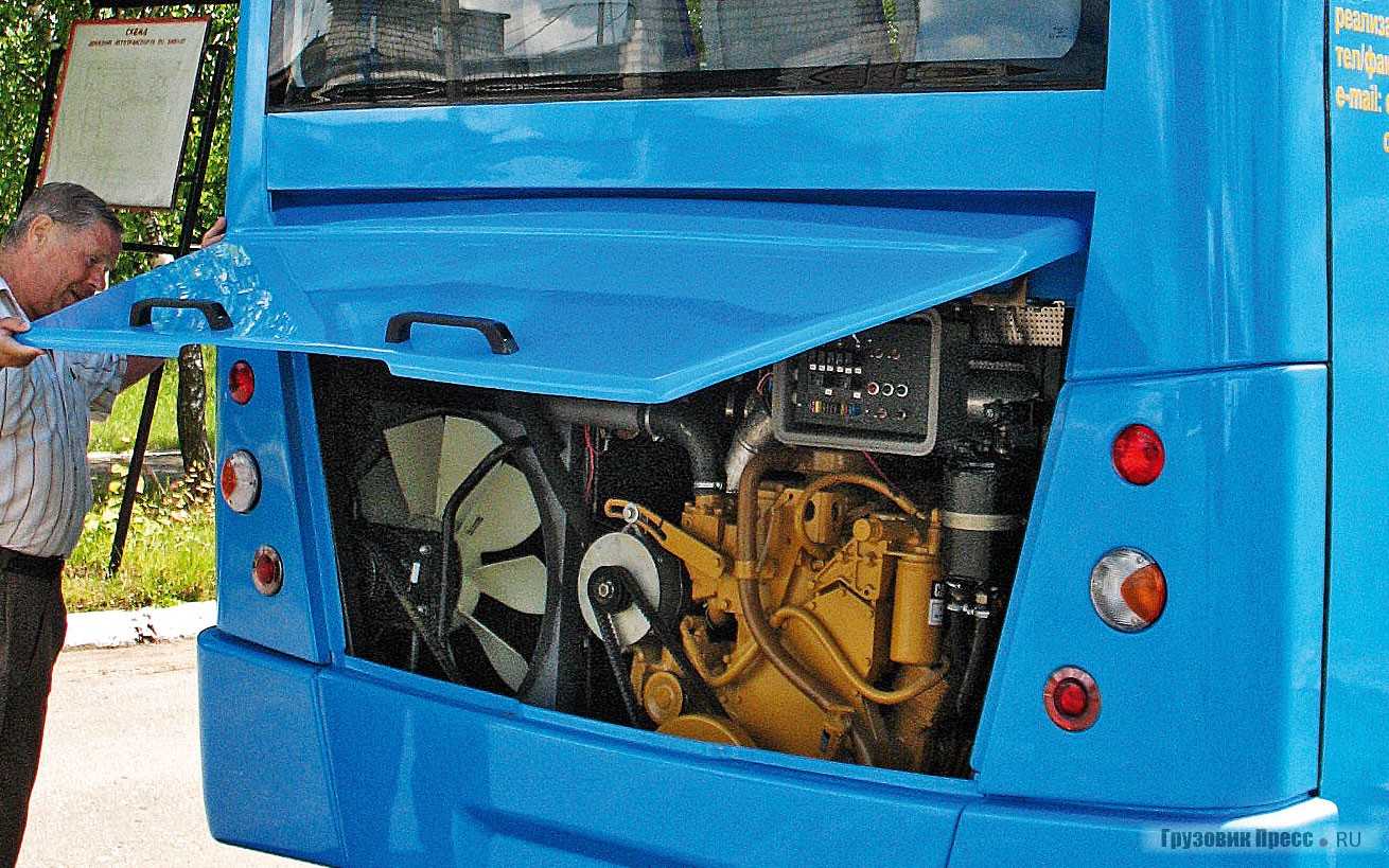 Силовую установку поместили в заднем свесе. Первые модели, оснащали восьмицилиндровыми, V-образными, дизельными двигателями КамАЗ, рабочим объемом 10,8 л, мощностью 237 л. с. За последовательную передачу крутящего момента на ведущие оси, отвечала 5-и ступенчатая механическая коробка передач.