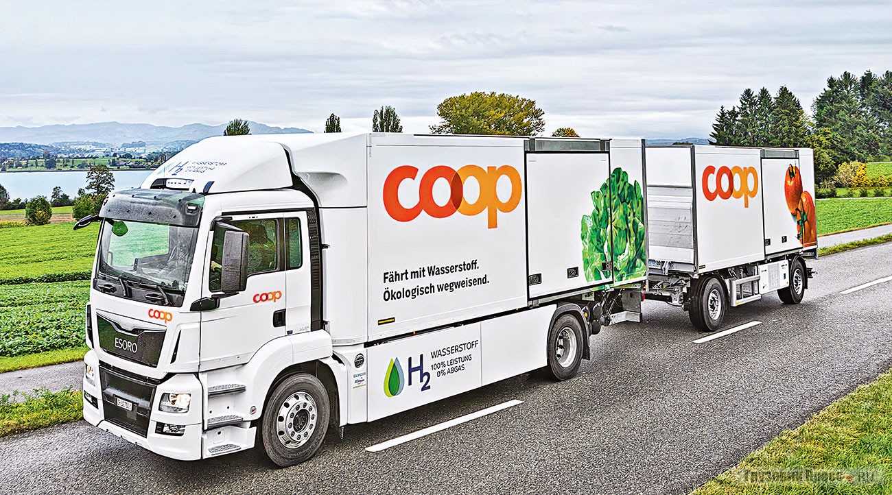Одним из основных популяризаторов водородной технологии стал ретейлер Coop Group – второй после Migros владелец товаропроводящей сети магазинов в Швейцарии. Руководство фирмы ещё в 2008 году поймало вирус экологизма. На этой почве компания приобрела 6 электрогрузовиков, а потом объявила, что её автопарк станет CO2-нейтральным не позднее 2023 года.
