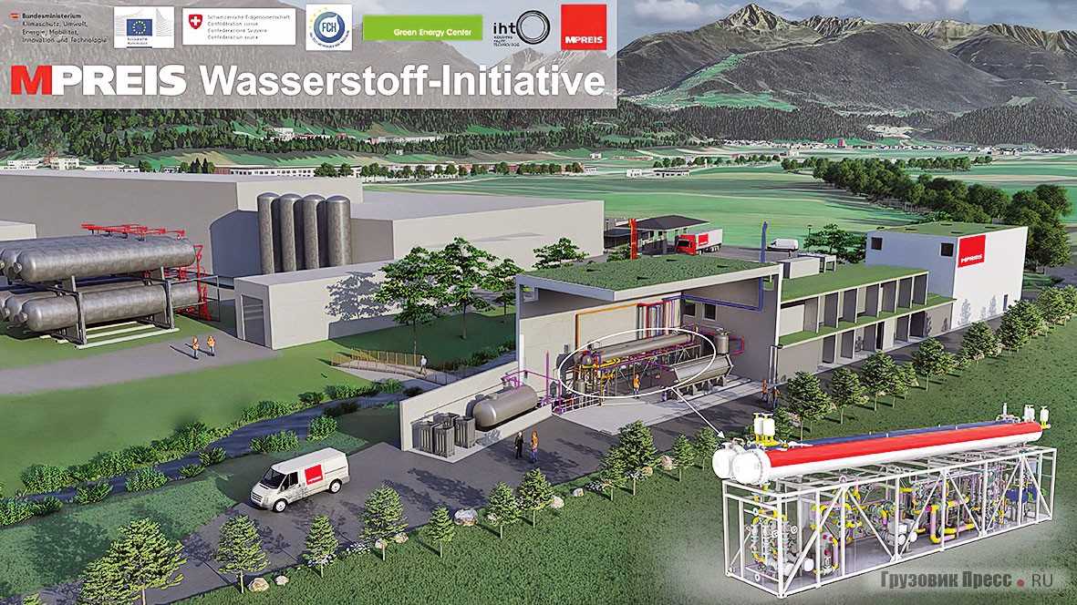 И вот в альпийский водородный тренд похоже впрягается Австрия. Застрельщиком борьбы за экологию стала сеть супермаркетов MPreis в рамках проекта Demo4Grid, спонсируемым ЕС. MPREIS Warenvertriebs GmbH владеет множеством продовольственных магазинов в Тироле, и имеет собственный парк из 42 грузовых автомобилей. Среди этих транспортных средств в основном преобладают тандемные автопоезда MAN TGX с прицепами.
