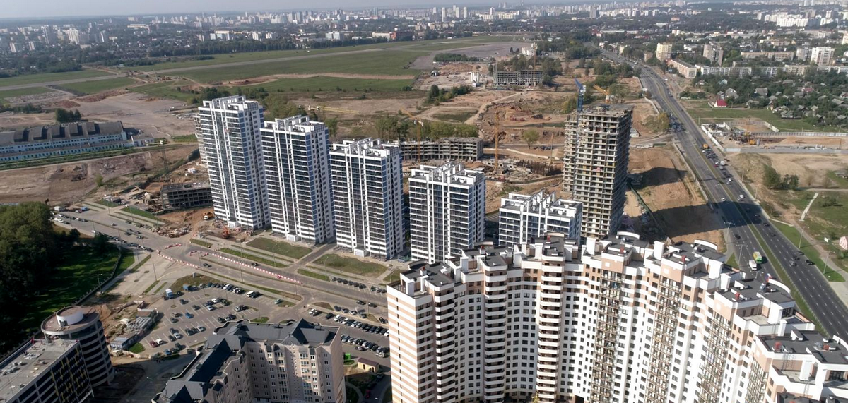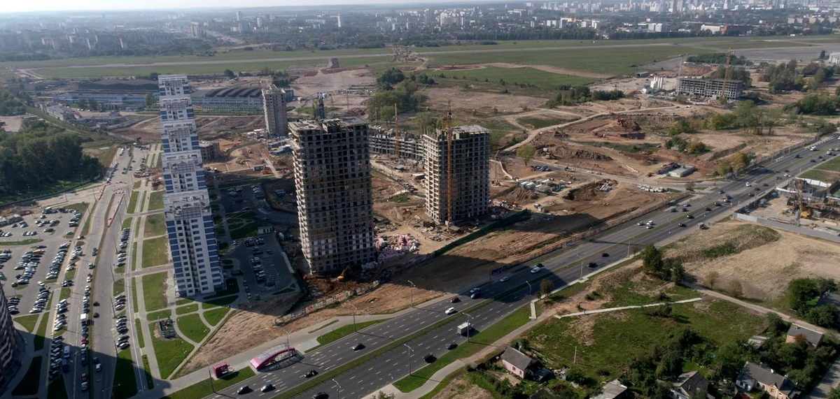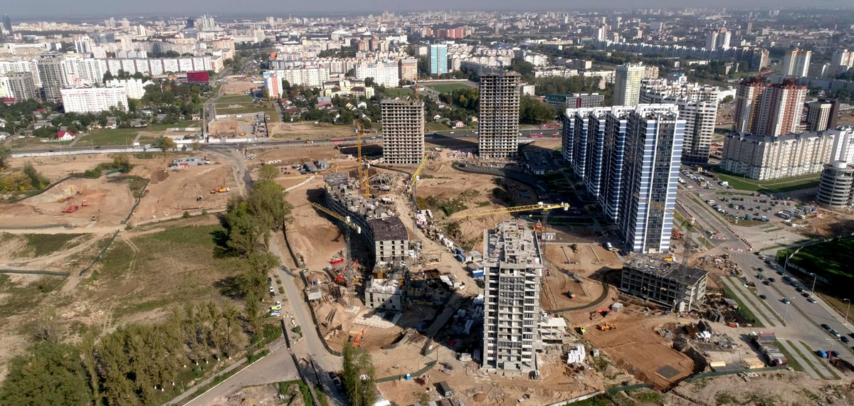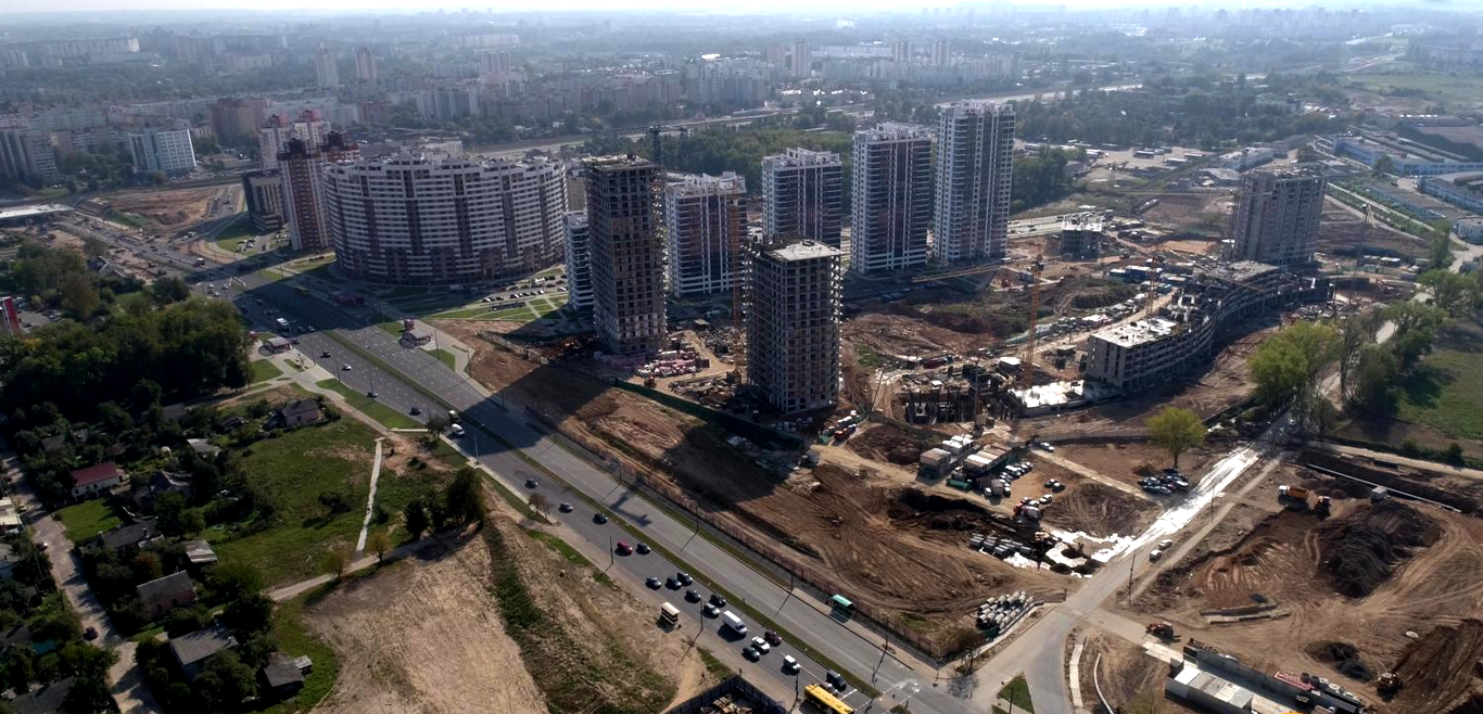 Несмотря на то, что в течение 2017–2018 годов заселили шесть домов, район в целом все еще выглядит как стройплощадка. На сайте застройщика на снимках цветет сакура, но в действительности там горы навороченной земли, а проспект Мира пока что является тупиковым проездом куда-то к задворкам кладбища. Когда застроят хотя бы один квартал (а строительство обещают завершить в 2027 году), район будет здорово напоминать проспект Дзержинского на въезде в Минск: богатство белого и бежевого с отдельными вкраплениями синего. Успеют ли все доделать? За три с лишним года (первый камень заложили в октябре 2015–го) сдали шесть домов. За оставшиеся девять лет надо исхитриться и сдать три десятка жилых домов (это только те, что есть на детальных рендерах), магазины, школы, спортплощадки — и вновь пообещать международный финансовый центр, который «станет сердцем, движущей силой проекта и основным экономическим фактором комплекса». Вот так стройка выглядела с высоты дронового полета в октябре 2018–го. Сильные сомнения, что компания сможет вовремя сдать 24 (!) жилых квартала.