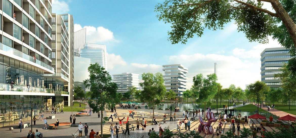 Все остальное пока только строится и проектируется, полюбоваться будущим городом-садом с бизнес-центрами можно на рендерах, по которым ведется застройка. Небоскребами там не пахнет.