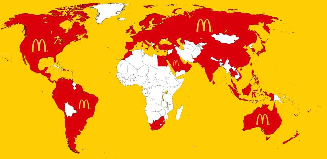 Мы собрали для Вас список стран, где сейчас нету Макдональдса: Северная Корея, Боливия, Иран, Ямайка, Таджикистан, Гана, Бермуды, Зимбабве, Македония, Босния и Герцеговина, Туркмения, Киргизия, Исландия, Черногория, Узбекистан, Барбадос, Тунис. Полный список стран, где нет Макдональдса Вы сможете увидеть на фото: