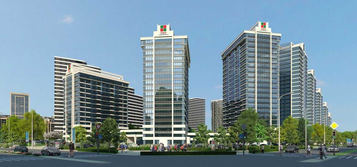 В результате «Итеру» отстранили от участия в застройке и пригласили сербских друзей из Dana Holdings. Те целиком переиначали проект и отказались от небоскреба-аиста, но все же нарисовали несколько небоскребов попроще — двояковыгнутых, обоюдовогнутых и диаметрально скошенных.
