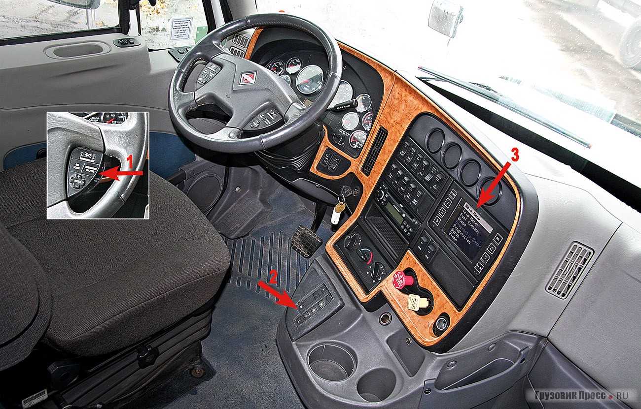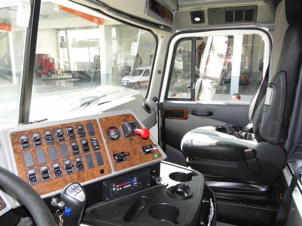 Данная часть грузовика изготовлена из прочных алюминиевых панелей и тех, что выполнены из пластика. Опыт работы показал, что это оправданно. Сама кабина находится достаточно высоко над землей, водитель попадает в нее посредством подъема на широкие ступени и удобные поручни.