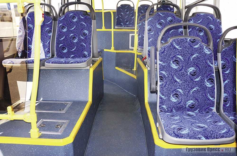 Теперь низкий пол по всей длине салона. Безусловно, перемещаться по ровной поверхности прохода удобнее, чем прыгать по ступеням. Тем более когда речь идёт о городской машине, где течёт бесконечный поток пассажиров, а сам автобус постоянно передвигается в «рваном» ритме. Но из-за того, что сиденья всё равно расположены на подиумах различной высоты, воспользоваться всеми благами низкопольности возможно только при 60 %-ной загрузке салона, ибо процесс перемещения пассажиров с упомянутых подиумов всё равно требует дополнительного места в проходе, сводя на нет все «плюсы» ровного прохода.