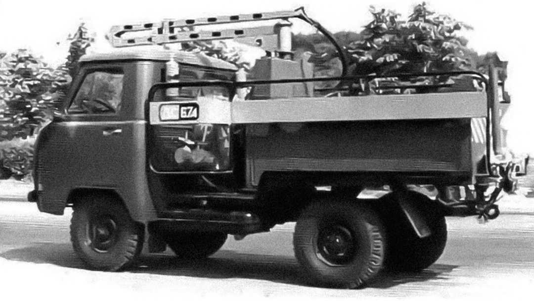 Эту трудягу на базе «Буханки» модификации УАЗ-452Д использовали для ремонта и укладки асфальтированного покрытия цементобетонных покрытий дорог и аэродромов. Основное назначение восстановительного автомобиля заключалось в заливке швов. Выпускалась машина под названием ДС-67А.