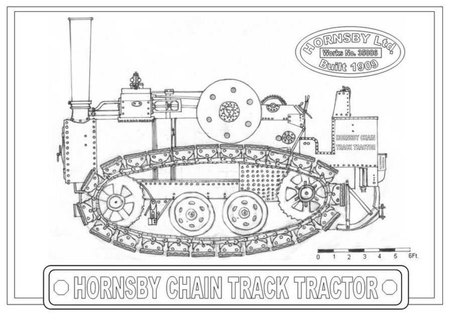 в начале XIX века предприниматель и инженер Ричард Хорнсби основал в городе Грантеме компанию по производству сельскохозяйственного оборудования. С 1840-х годов предприятие производило паровые двигатели, а позже — тракторы, но не с паровыми, а с нефтяными и газовыми двигателями. В 1904 году Дэвид Робертс, инженер и управляющий директор Richard Hornsby & Sons запатентовал гусеницу, составленную из отдельных звеньев (траков). Это устройство получило название Caterpillar track, которое позднее стало маркой знаменитого американского трактора. Через год на предприятии изготовили паровой гусеничный трактор. Машина весила 10 тонн, а двигатель имел мощность 20 л. с. Она осталась лишь экспериментом –паровая тяга была уже неактуальна.