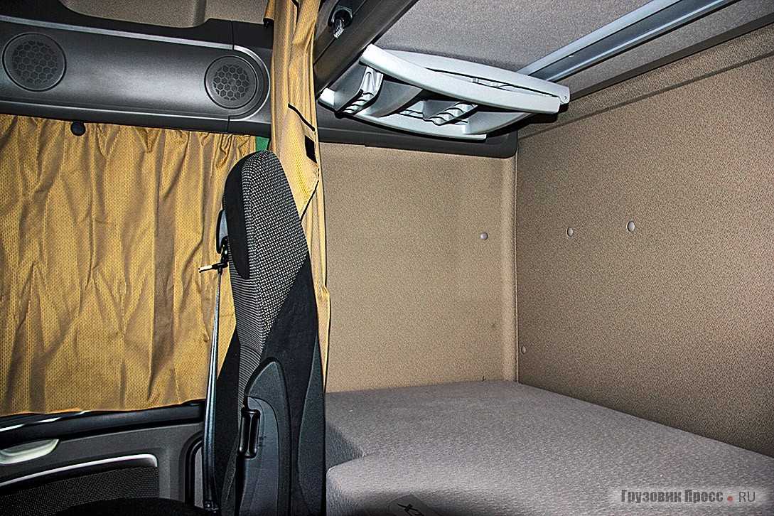 Грузовик оборудован двумя спальными местамиСреди ключевых элементов конструкции также целесообразно упомянуть: