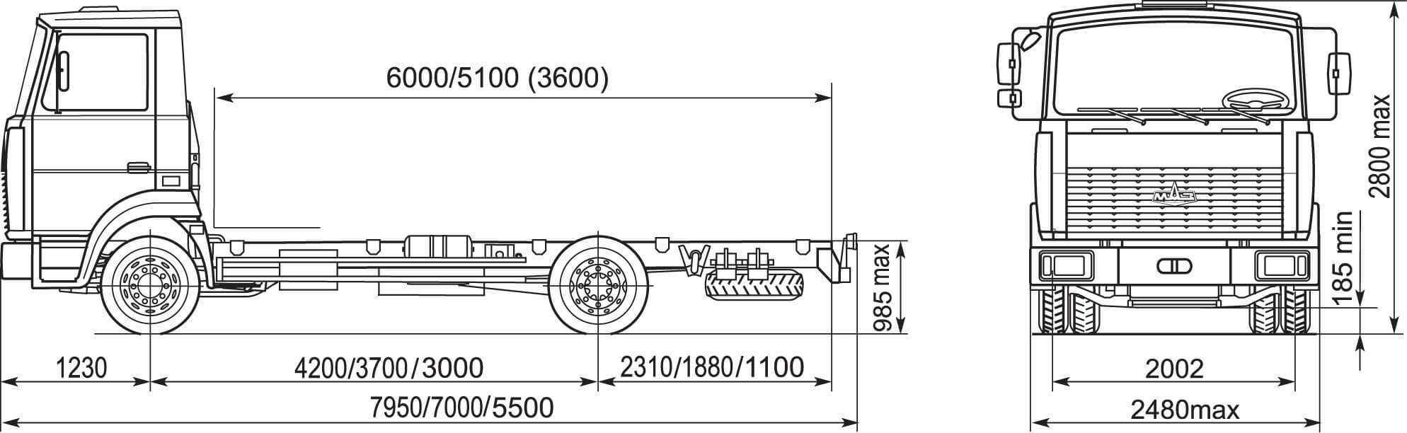 МАЗ 4370 производится в нескольких вариантах колесной базы, это: