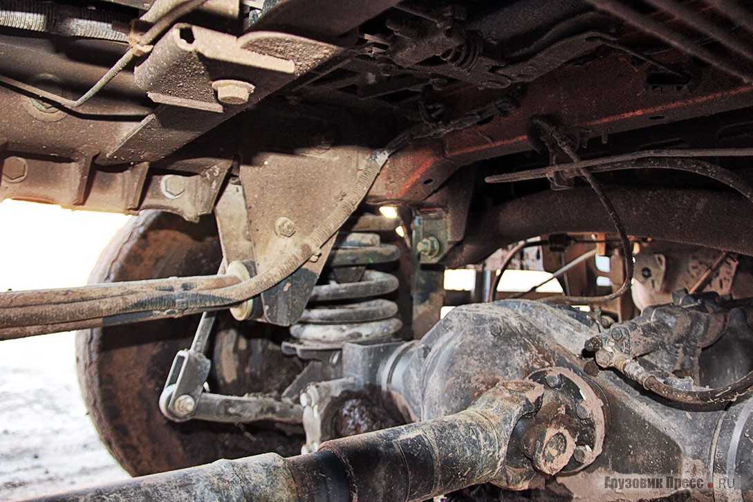 Картер главной передачи переднего ведущего моста выполнен в отдельном корпусе, откуда и выходят полуоси, как на легковых «мерсах» с шильдиком 4MATIC. Это даёт возможность применить независимую переднюю подвеску на поперечных треугольных рычагах и амортизаторных стойках, похожую на MacPherson, но немного сложнее. Рама усилена дополнительными вставками, поперечинами и косынками, что позволяет повысить грузоподъёмность до 4 т, а нагрузкам, вызывающим скручивание рамы, препятствует особенная задняя подвеска.