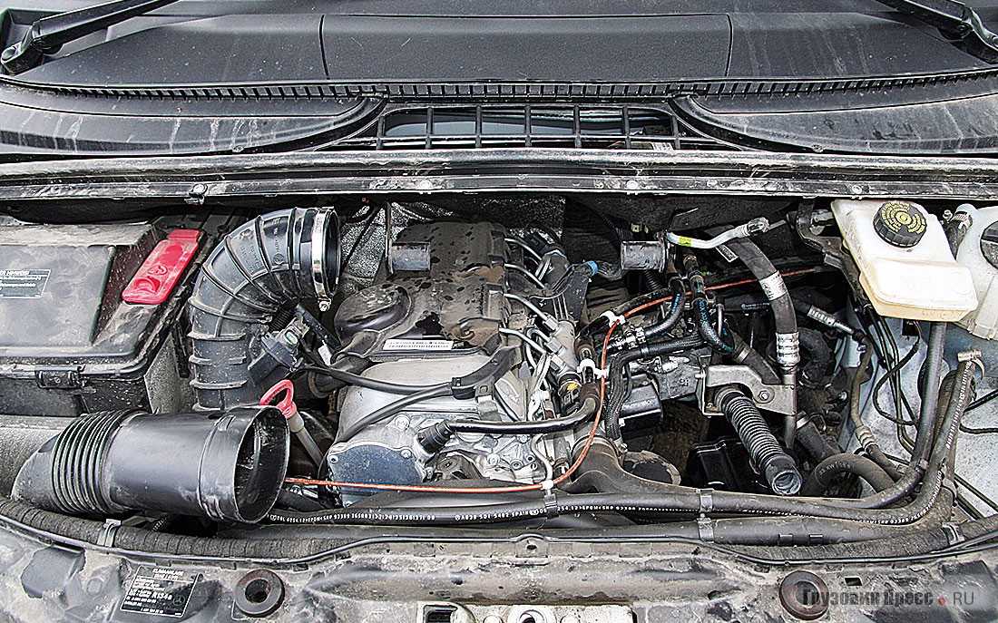 Для ежедневного осмотра доступны лишь масляный щуп и несколько расширительных бачков. Кстати, на моторах предыдущего поколения Vito радиатор изготовляли вместе с расширительным бачком охлаждающей жидкости, и при малейшей поломке приходилось менять оба узла. Конструкторы Mercedes-Benz провели «работу над ошибками» и установили бачок охлаждающей жидкости в привычном месте, соединив с радиатором патрубком. Дешево и сердито.