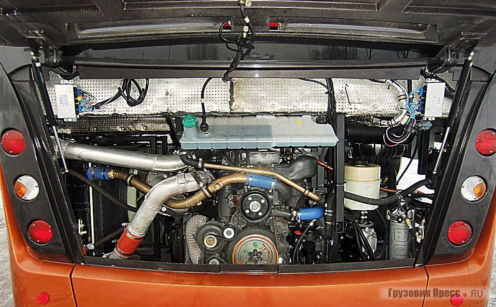 Неспроста в автобусе появился и современный двигатель Daimler OM926LA, отвечающий Euro 5 и более жёстким EEV, которые пока являются лишь предпочтительными. Основной задачей было разместить в моторном отсеке двигатель, максимально увешанный вспомогательными системами. Ведь вставить в такой отсек менее экологичные двигатели, гораздо проще, чем потом искать место для очередного «умного» блока.