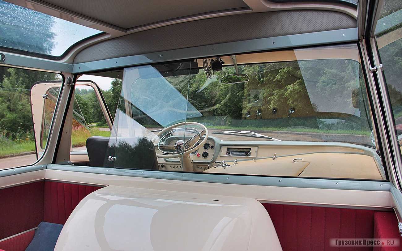 Обзор на рабочем месте – лучше не придумаешь! Я неплохо уселся, обнаружив две регулировки водительского сиденья (это немало для авто, разменявшего шестой десяток) с пухлой подушкой и короткой спинкой без подголовника. Глянул в маленькие кругляши зеркал заднего вида, установленные на отдельных хромированных «куриных ножках», попробовал на ощупь светлое и тонюсенькое по сегодняшним меркам рулевое колесо, в ступице которого красовался рубиновый, что кремлёвские звёзды на башнях, логотип автозавода.