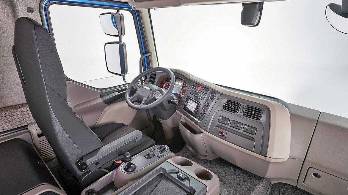 Отдельного упоминания заслуживает организация рабочего пространства водителя. Кабина представлена в двух вариантах: