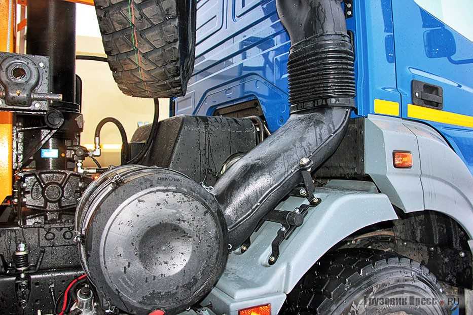 Теперь самое время вспомнить о силовом агрегате. Сегодня их в распоряжении КАМАЗа достаточно как никогда. В соответствии с изложенной концепцией «трёх направлений», это могут быть как агрегаты Daimler, так и свои собственные V-образные моторы модернизированного семейства 740. Есть ещё совместное предприятие, где собирают по лицензии 7-литровый Cummins ISB6.7E4300. В перспективе ведётся сотрудничество с моторостроителями Liebherr, но эта стезя не сулит быстрой выгоды. Но для пяти десятков тонн полной массы тем не менее надо что-то ещё. И тогда на помощь приходит вновь плод совместного… аж трёхстороннего сотрудничества!