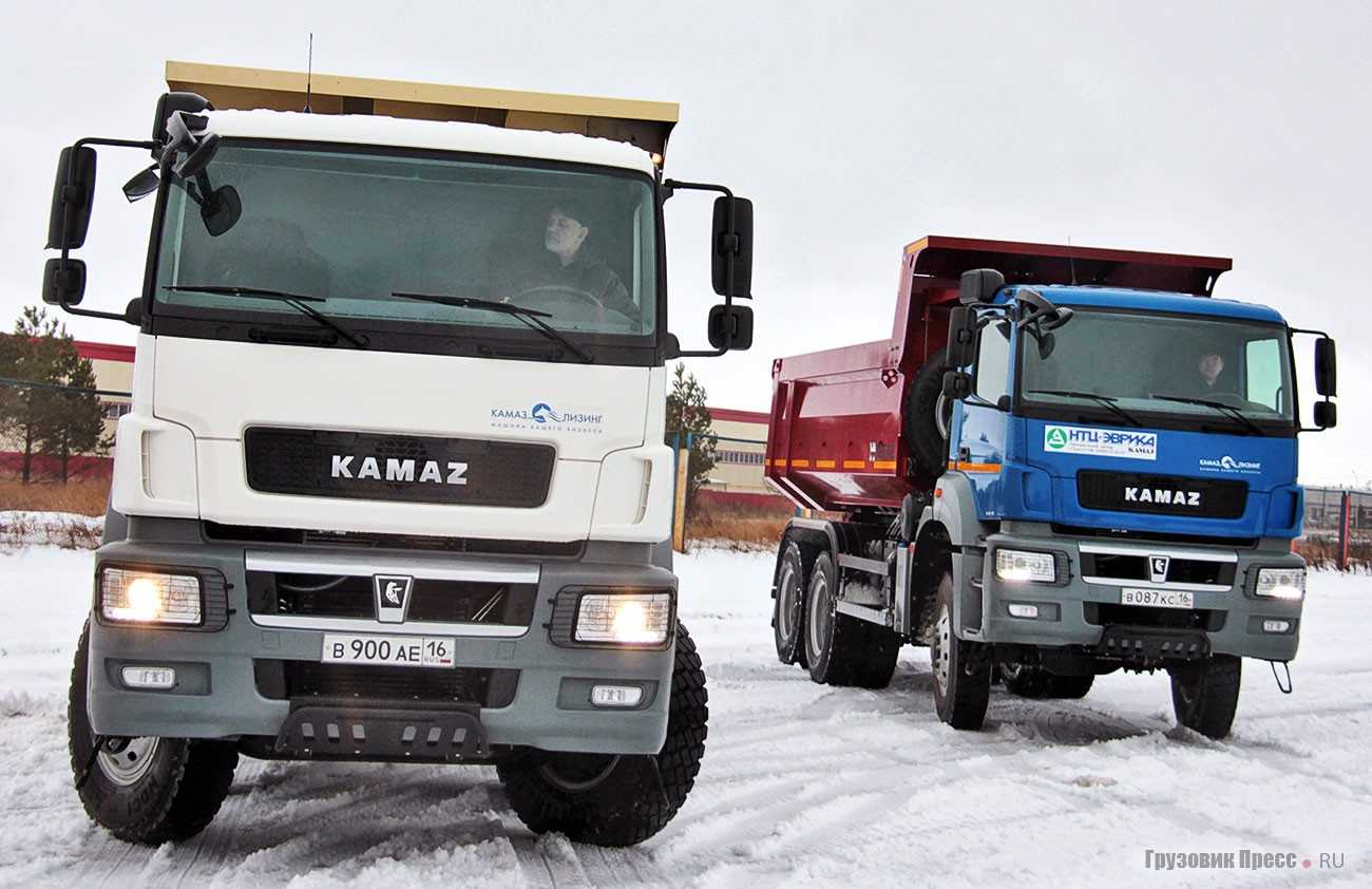 Поехали, и вот вылезает досадный огрех, свойственный любому предсерийному образцу, – спица рулевого колеса напрочь отказывается стремиться в центр при прямолинейном движении, а около-нулевая зона размытая. Сначала я подумал о неверной установке руля на шлицах рулевого вала, но потом заметил некоторое рысканье грузовика, что говорит о необходимости регулировки схождения колёс передней оси. Двигатель здесь чуть менее мощный – 410 «лошадок», но принципиальной разницы с самосвалом 8х4 нет, а утверждать о нюансах управляемости не берусь, сначала надо отрегулировать углы установки передних колёс. Естественно, что на более короткой 3-осной машине радиус поворота будет несколько меньше, и ввинчиваться в траекторию автомобиль начинает раньше и острее, вот, пожалуй, и всё.