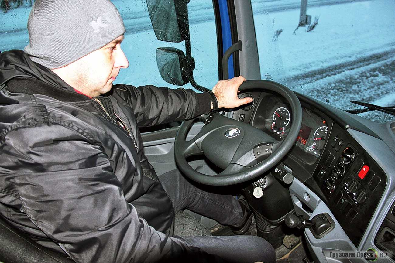 «Верёвочная» лестница нижней подножки, щелчок дверного замка, и вот я за рулём. Что я жду от этого грузовика? Продолжение шумного и аскетичного КАМАЗа – сверстника, родом, как и я, из 1976 года? Или, вероятно, это будет упрощённый «Мерседес», но может быть и очередной русско-китайский симбиоз с долей немецких деталей? Ничего подобного! К счастью, я ошибался. Это, действительно, вполне современный автомобиль.
