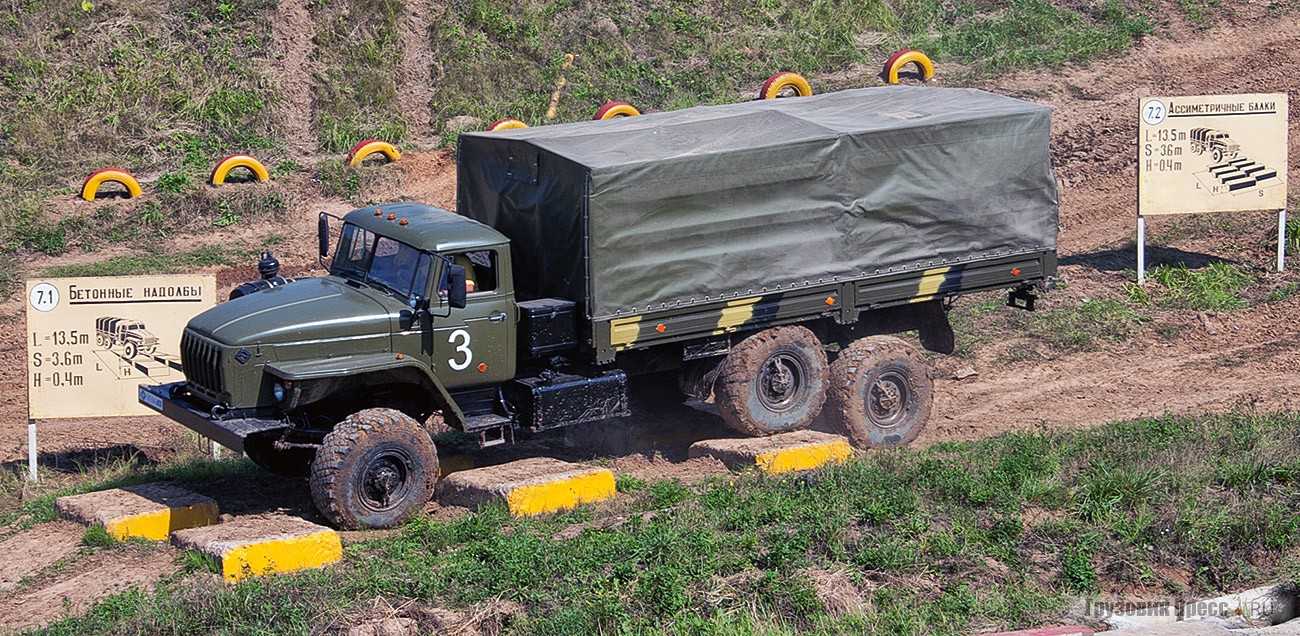 Урал-4320 адаптирован для всех типов дорог. Он не боится бездорожья. Предназначается для перевозки людей, крупногабаритных многотонных грузов, буксировки прицепов, специальной техники. Свободно проходит водоемы, болотистые места глубиной до 1,6 м, одолевает подъем наклоном в 60 градусов.