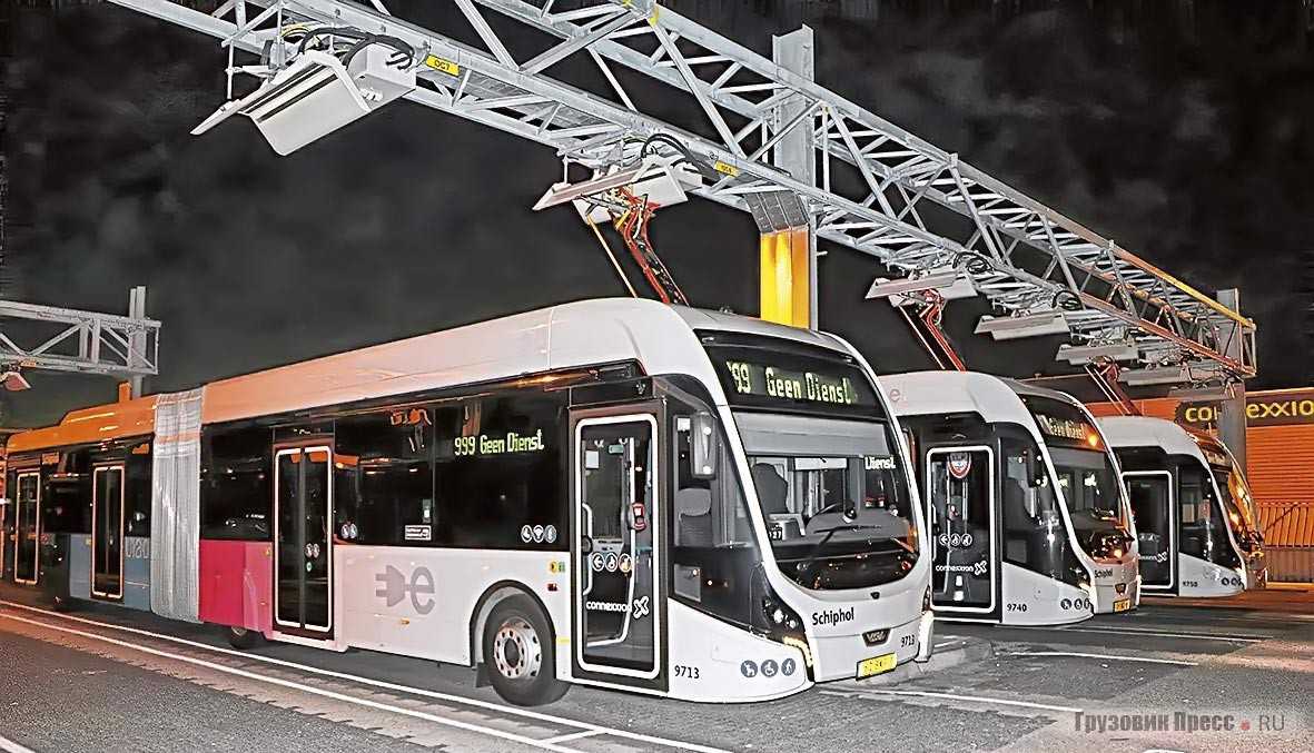 Электробусы, использующие подзарядку аккумуляторов во время езды: