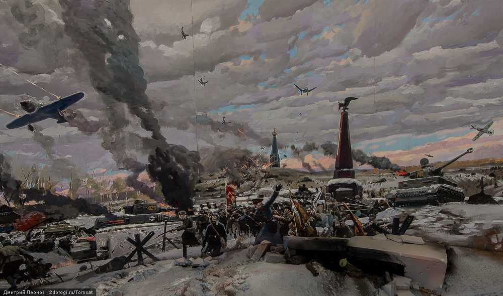 Фрагмент диорамы художника П.В.Рыженко «Битва под Москвой». На переднем плане — комдив-32 Виктор Иванович Полосухин.