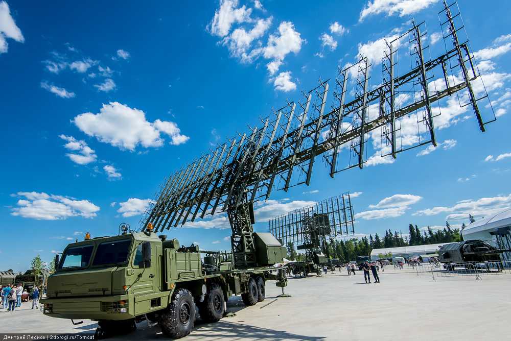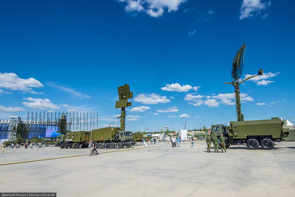 Экспозиция различной радиолокационной техники. Видны антенны комплексов «Небо» и «Каста».